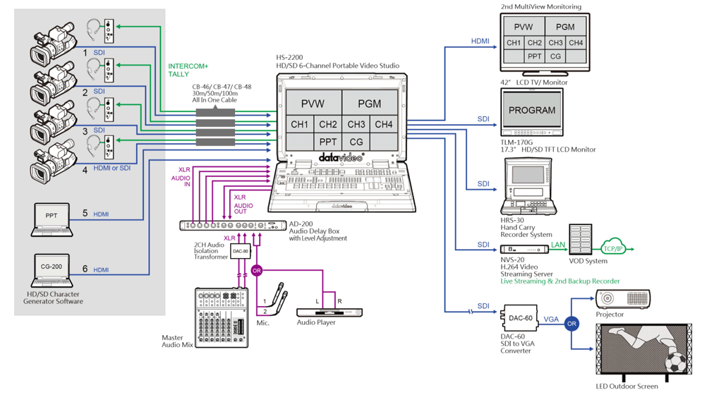 HD/SD-SDI 信号の録画や再生をする事が出来て、V-Mountバッテリーによる動作も可能です。 カラーサンプリング 4:2:2をサポートし、MPEG-ⅡロングGOPまたは イントラフレーム(Iフレーム)の記録フォーマット選択が出来ます。